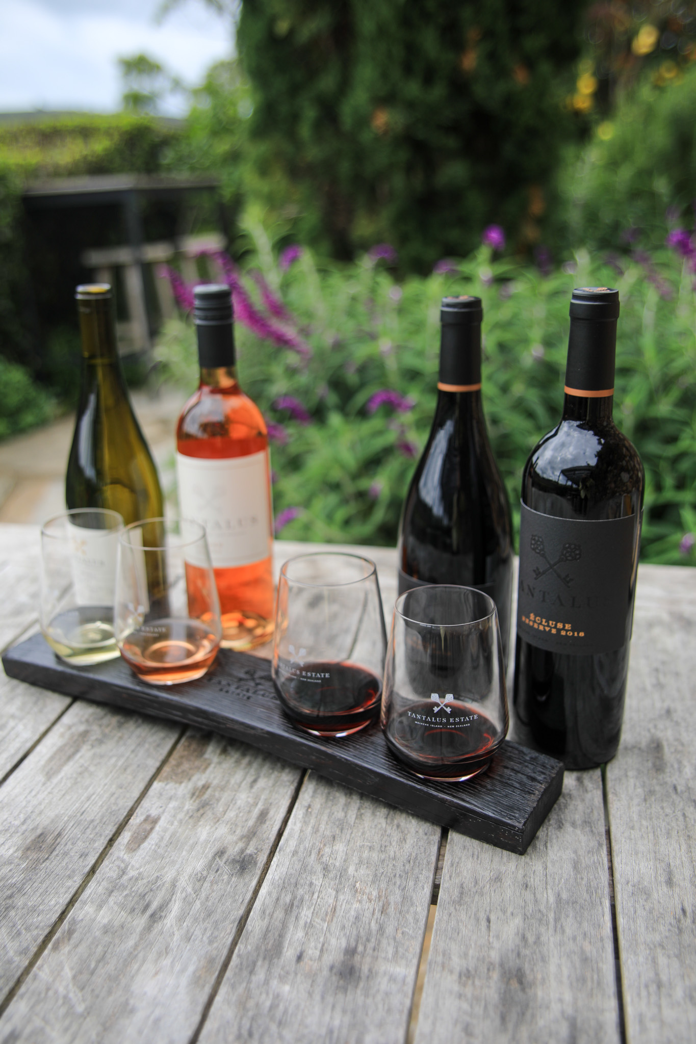 Taste a mix of four Tantalus Estate Wines, all grown on Waiheke Island, including our: